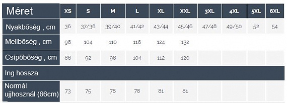 - Szabás: Slim fit, body fit